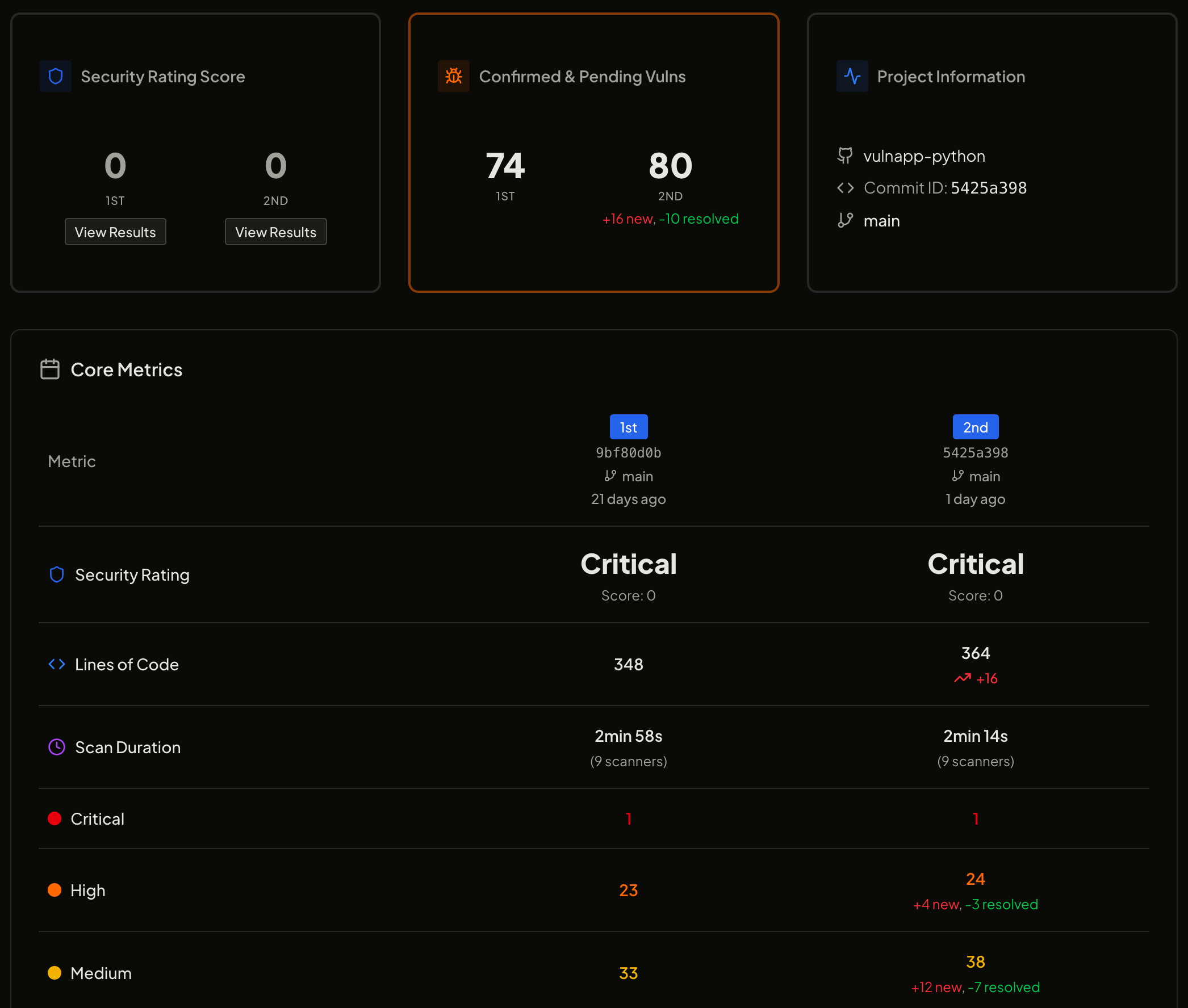 AquilaX now supports scan comparison, allowing teams to compare two security scans (e.g., across commits or branches) and view: