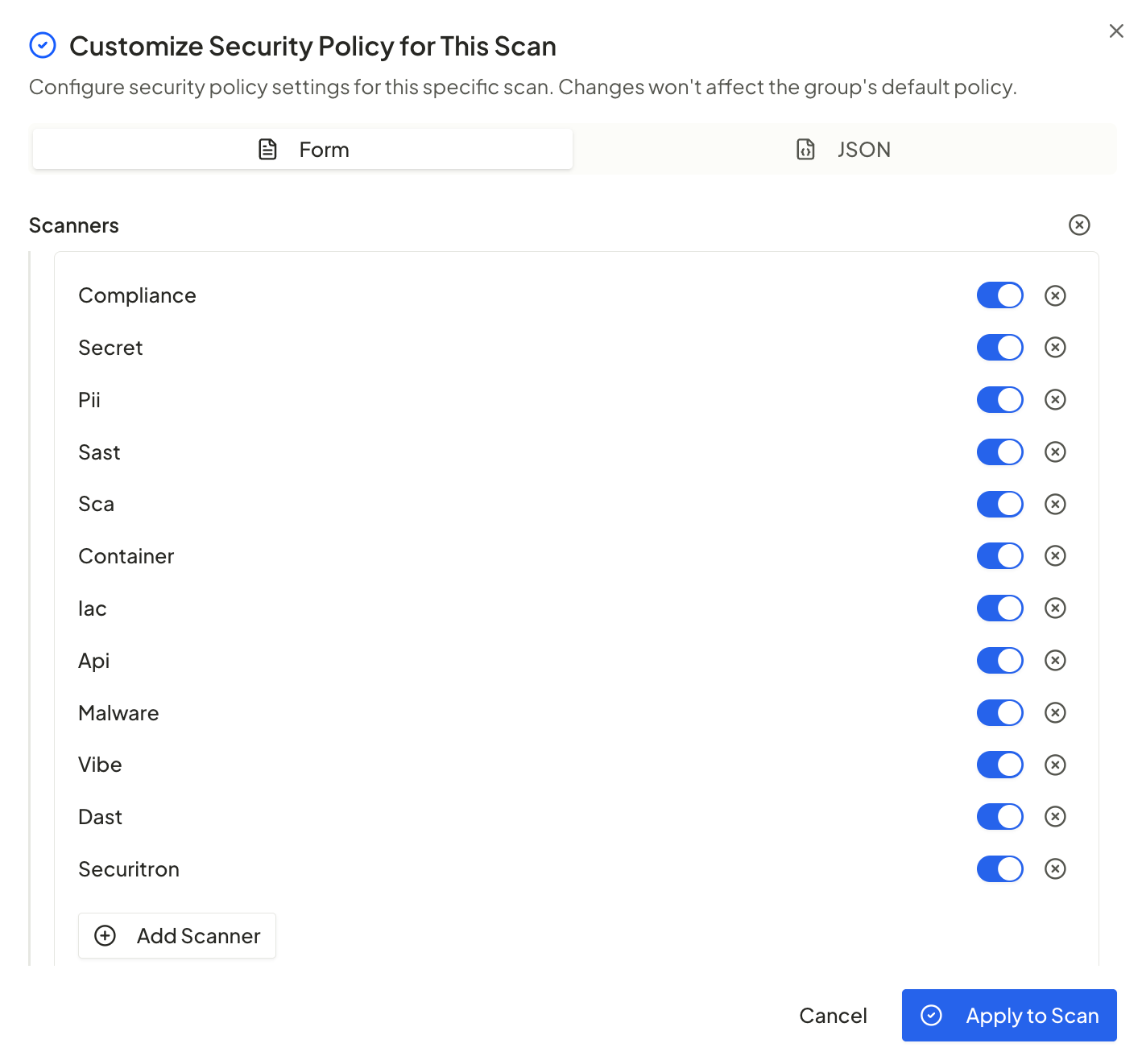 New UI to configure scan-level security policies at scan creation